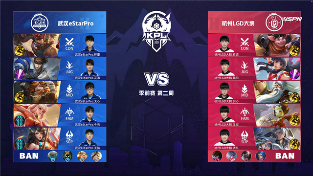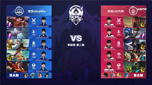 24直播网 3月19日2021KPL春季赛季前赛第二周第二日比赛,由武汉eStarPro对阵杭州LGD大鹅,以下是本场比赛快讯。