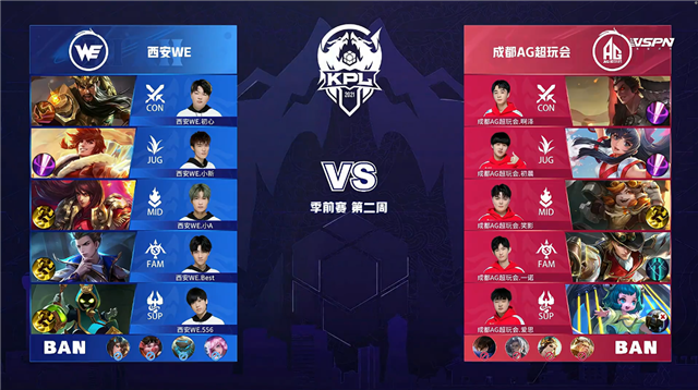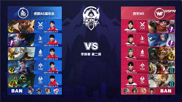 24直播网 3月18日2021KPL春季赛季前赛第二周第一日比赛,由成都AG超玩会对阵西安WE,以下是本场比赛快讯。