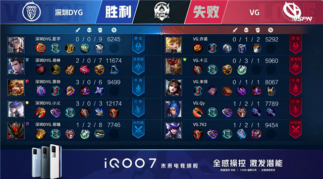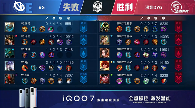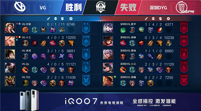 双方平稳开局,2分16秒深圳DYG拿下暴君。3分31秒深圳DYG摧毁敌方下路外塔。4分54秒主宰处团战VG击杀白起。5分58秒中路团战深圳DYG打出0换3。7分06秒野区团战深圳DYG击杀廉颇。7分40秒深圳DUYG拿下暴君。8分23秒深圳DYG摧毁敌方中路外塔。12分31秒深圳DYG拿下暗影暴君。13分04秒下路团战深圳DYG打出0换2。13分24秒深圳DYG摧毁敌方中路高地塔。13分38秒深圳DYG团灭对手摧毁水晶拿下比赛。