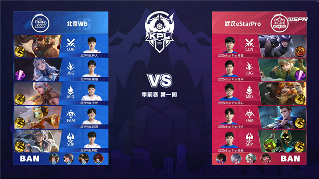 24直播网 3月14日2021KPL春季赛季前赛第一周第四日比赛,由北京WB对阵武汉eStarPro,以下是本场比赛快讯。