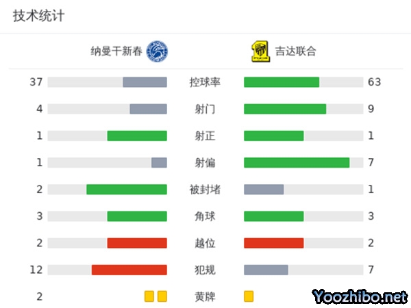 全场比赛结束,吉达国民客场0-0战平纳曼干新春。