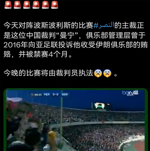 值得一提的是,此前另一位中国裁判傅明在执法利雅得胜利的比赛,也引发很大的争议,甚至被C罗推搡和怒斥等等。如今裁判换成马宁,期间依旧有很多的争议,被外界吐槽。